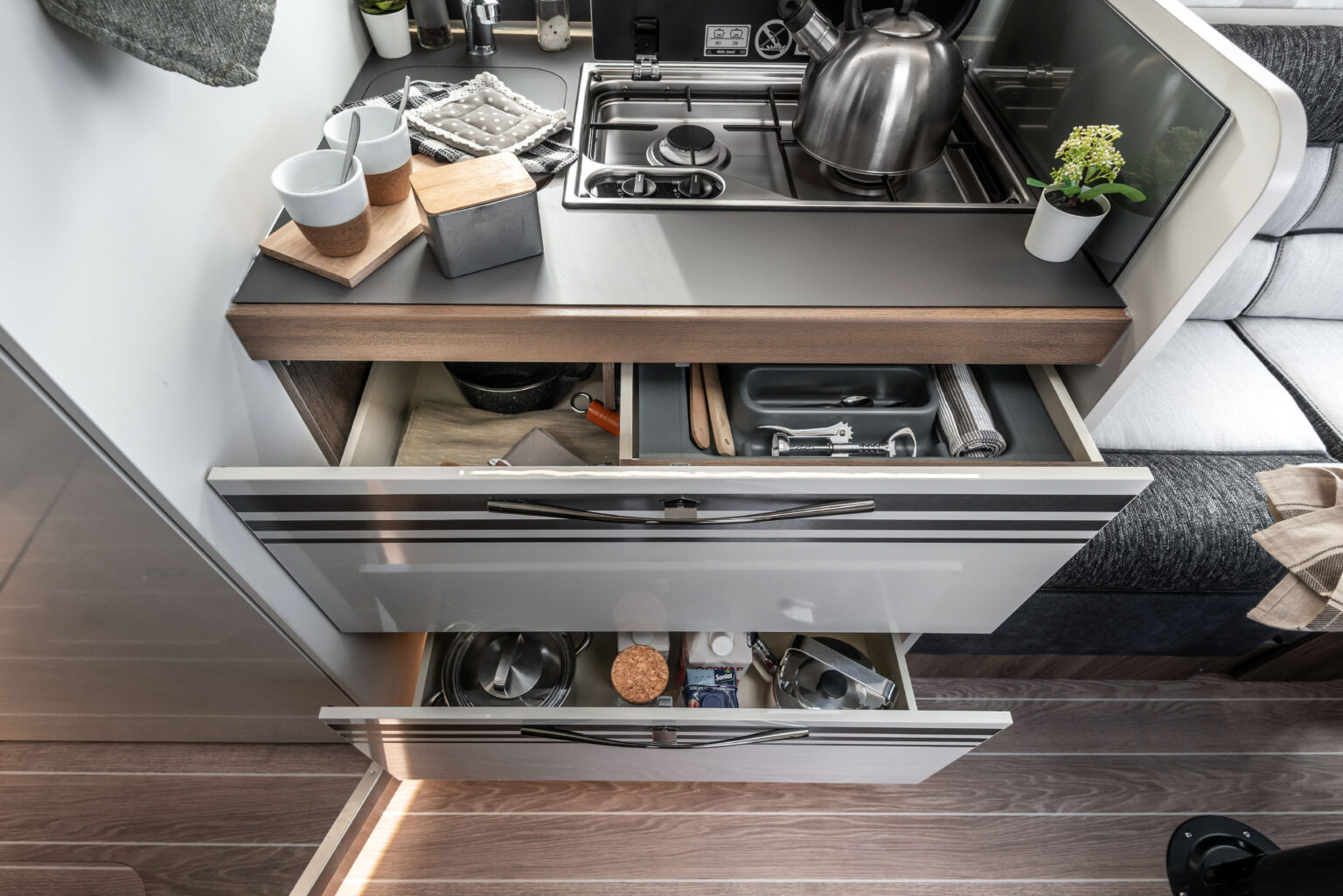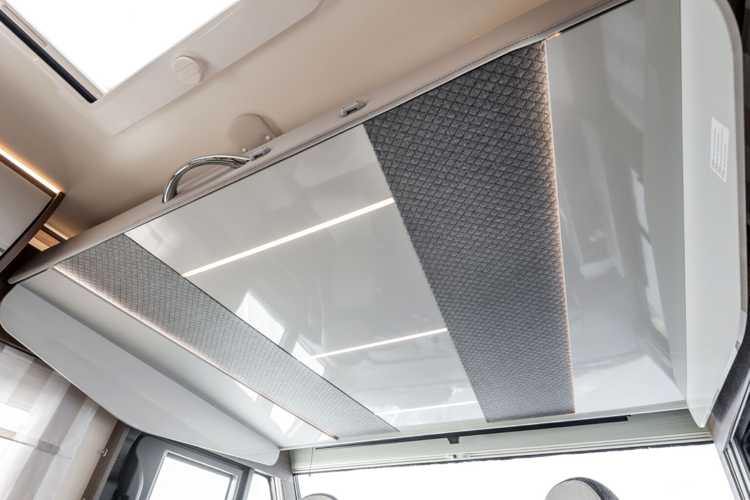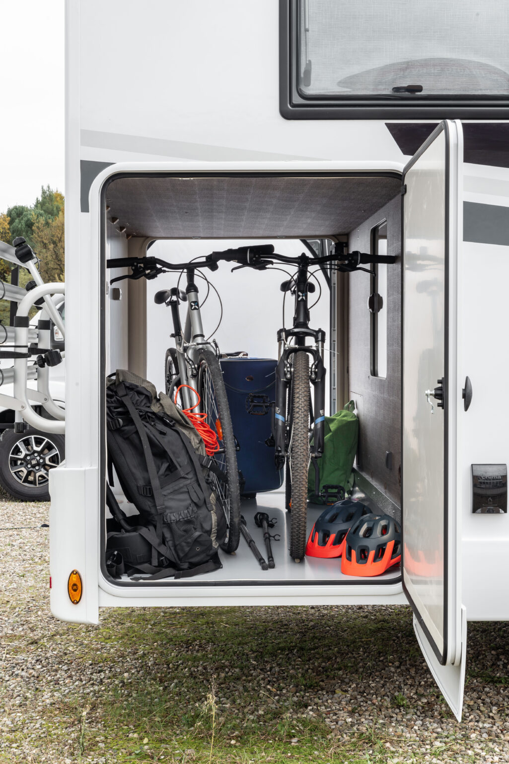 The motorhome for those looking for lots of space, separate areas and large storage capacity. Central double bed and independent bathroom/shower area.