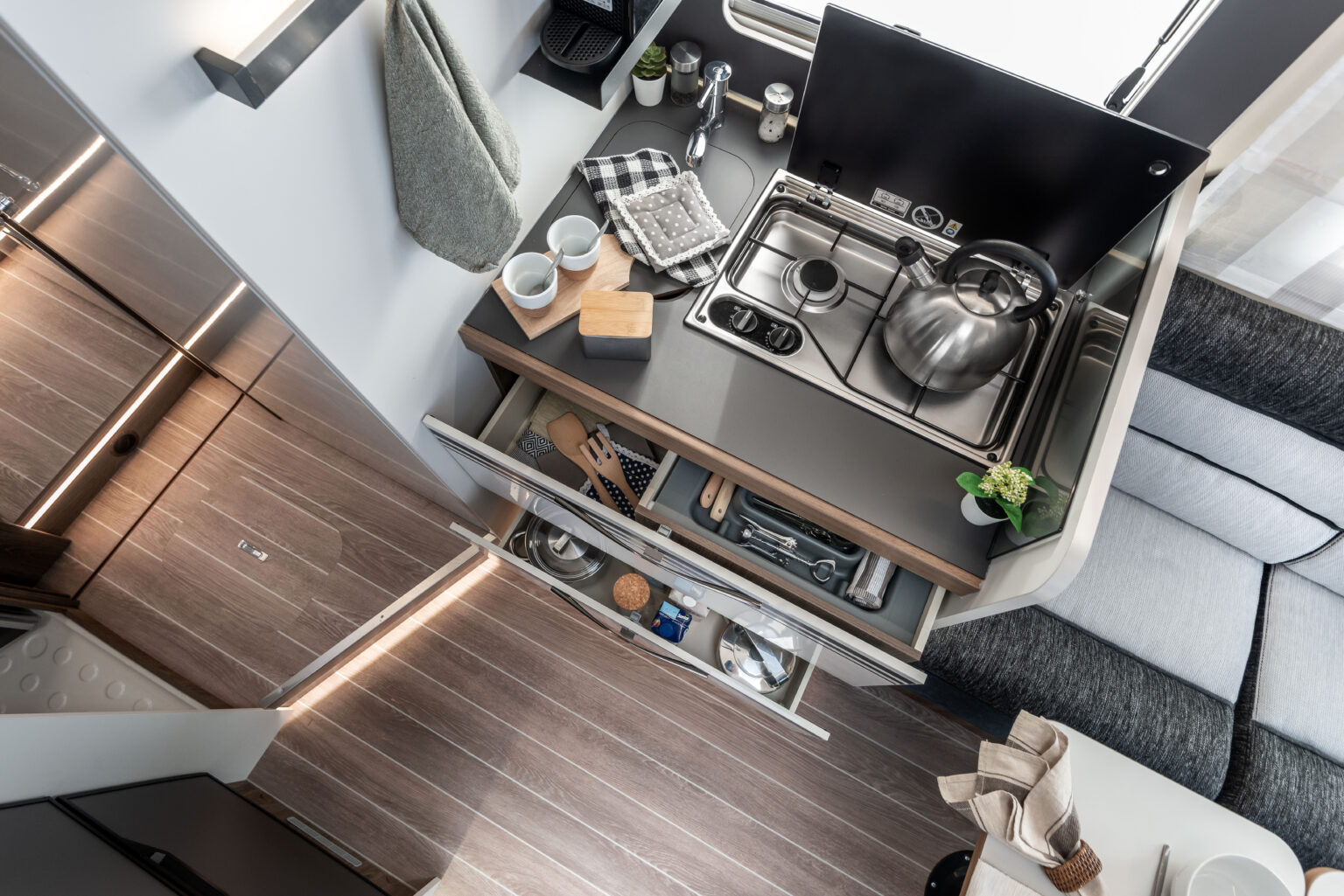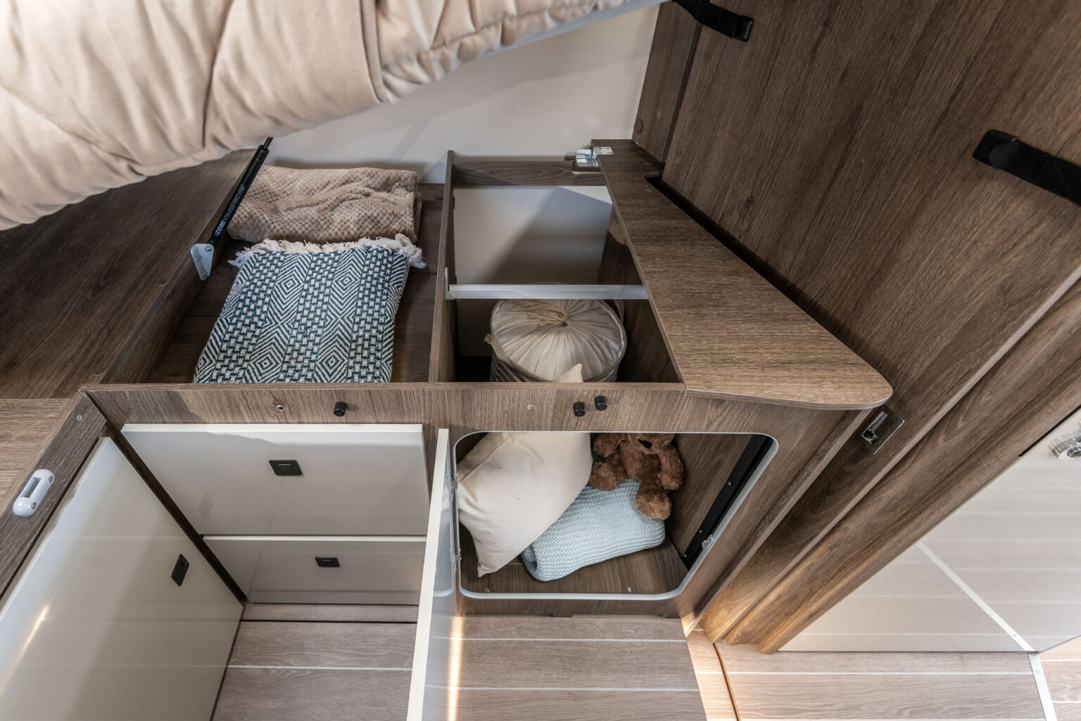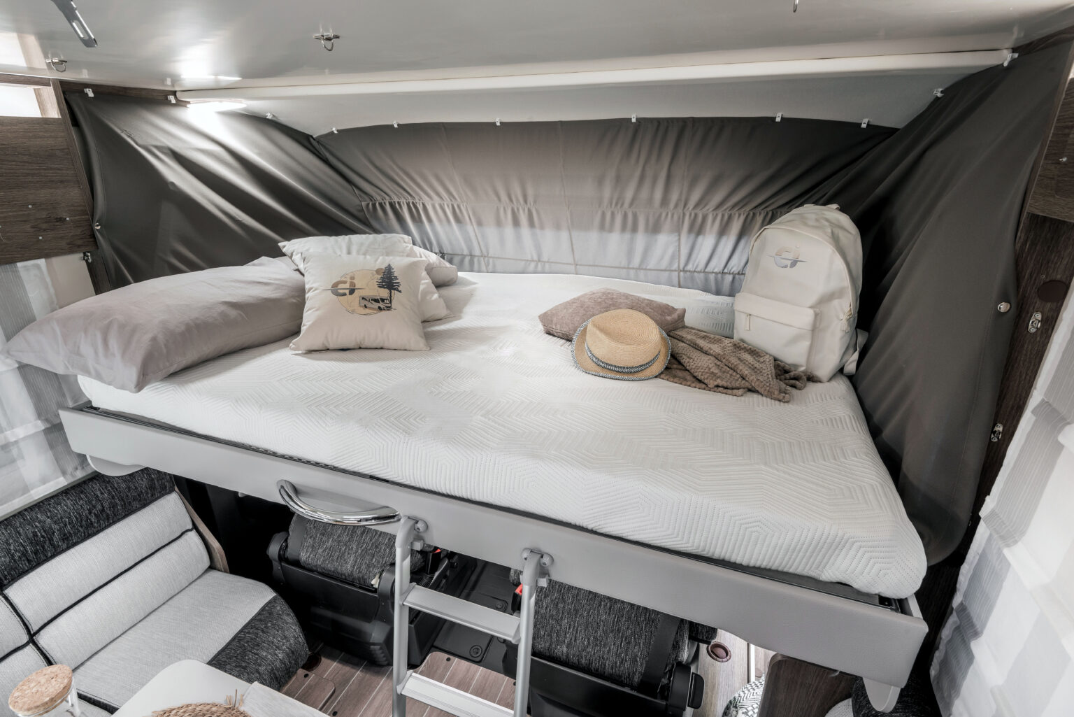 The motorhome for those looking for lots of space, separate areas and large storage capacity. Twin beds and independent toilet with separate shower compartment.