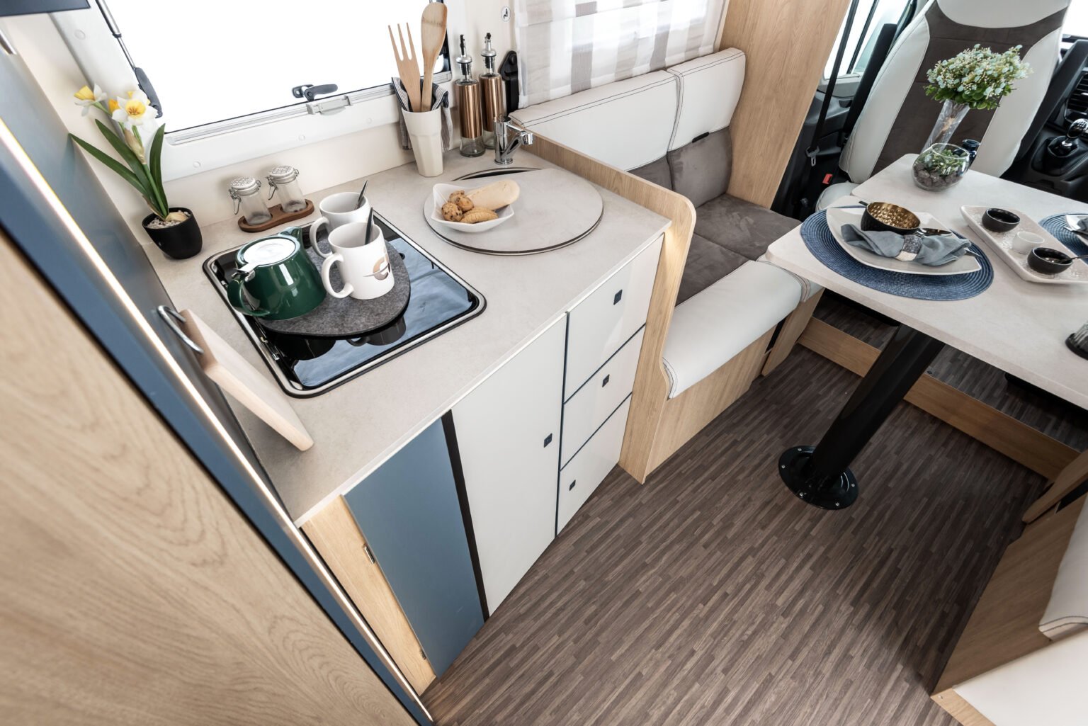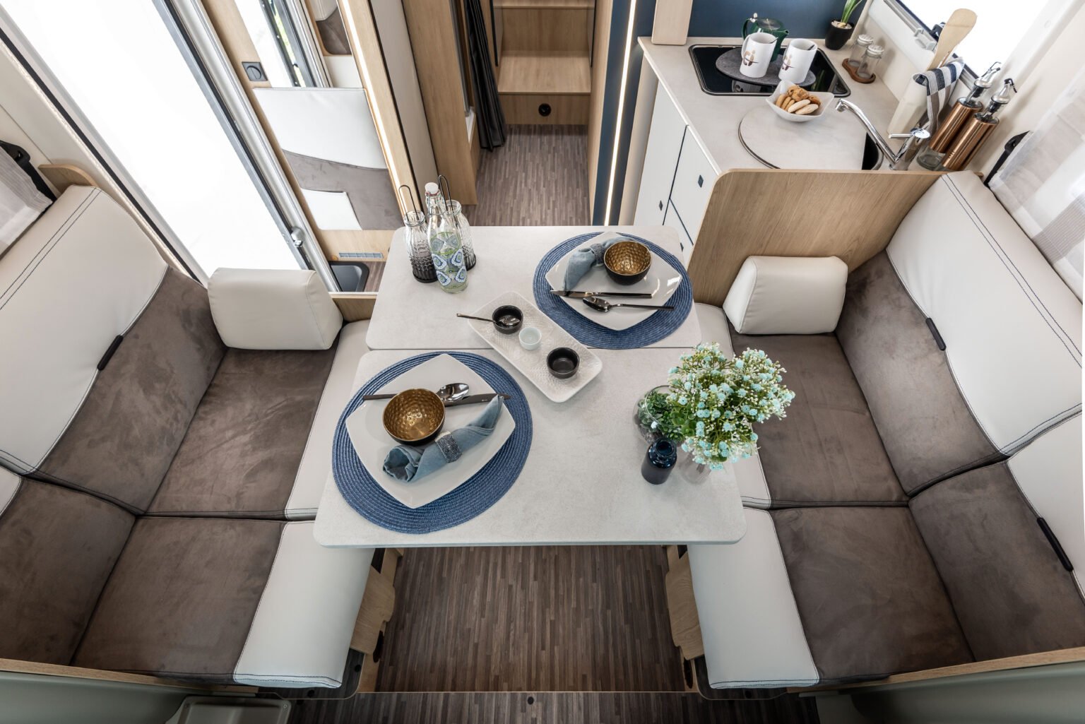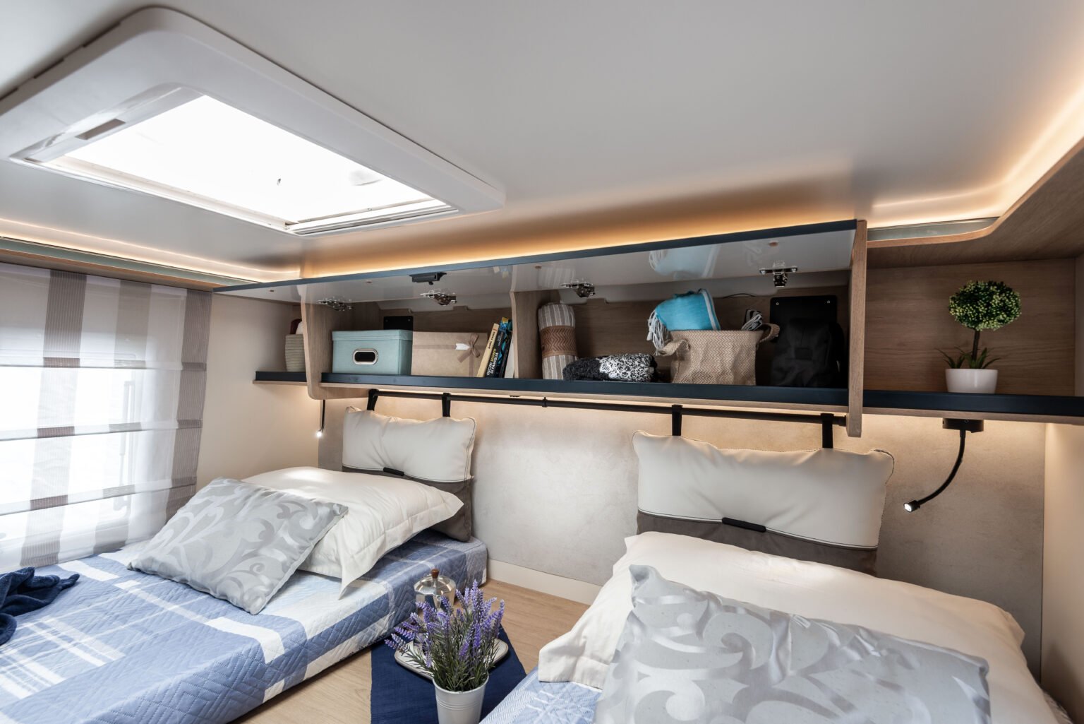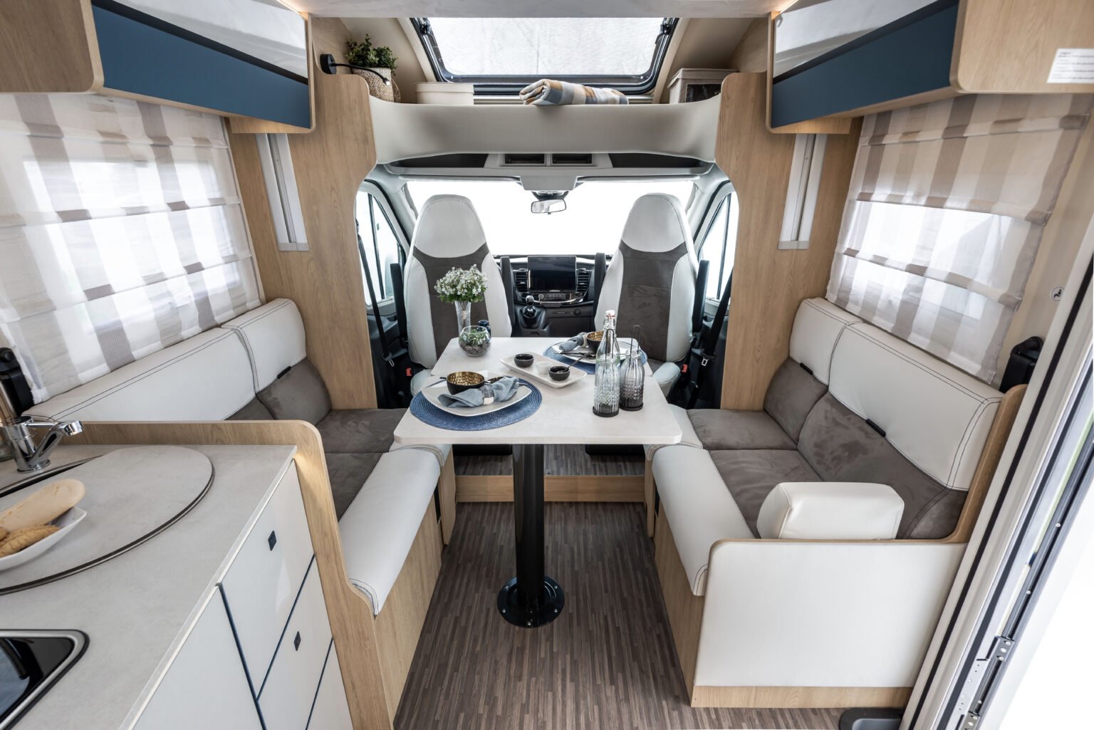 Il semintegrale ideale per chi cerca maggiore comfort e grande capacità di stivaggio. Con letti gemelli e toilette e doccia indipendenti.